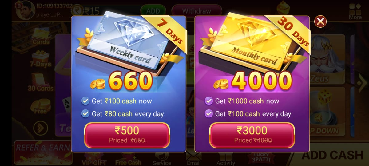 In the Apk you also get New options like Refer & Earn, VIP Card, 7 Days Daily Reward. The Teen Patti Raaj Apk has an Activity Center Like Option Coming Soon. Which you will then see in the Updates of the App.